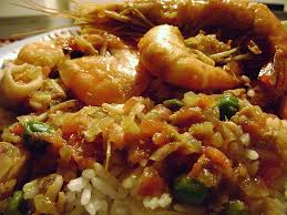 Calentar la salsa de tomate e incorporar los mariscos, el pulpo cortado en trozos, los calamares en rodajas finas y los camarones. Agregar el arroz, salpimentar y remover unos minutos hasta que la preparación se caliente.