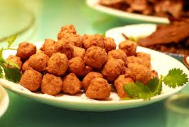 Picar toda la carne mezclada. Mezclarla con todos los ingredientes, menos la lechuga y el aceite, hasta hacer una pasta con la que haremos las albondigas pequeñas (como una nuez). Ponerlas en la heladera 1 hora y servirlas sobre la lechuga. POner aceite bien caliente en la olla y freir las albondigas.