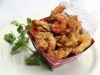 Escurrir los langostinos sobre papel absorbente, pasarlos por la pasta para freír y freírlos en aceite caliente hasta dorarlos, retirar con espumadera y secar en papel absorbente.